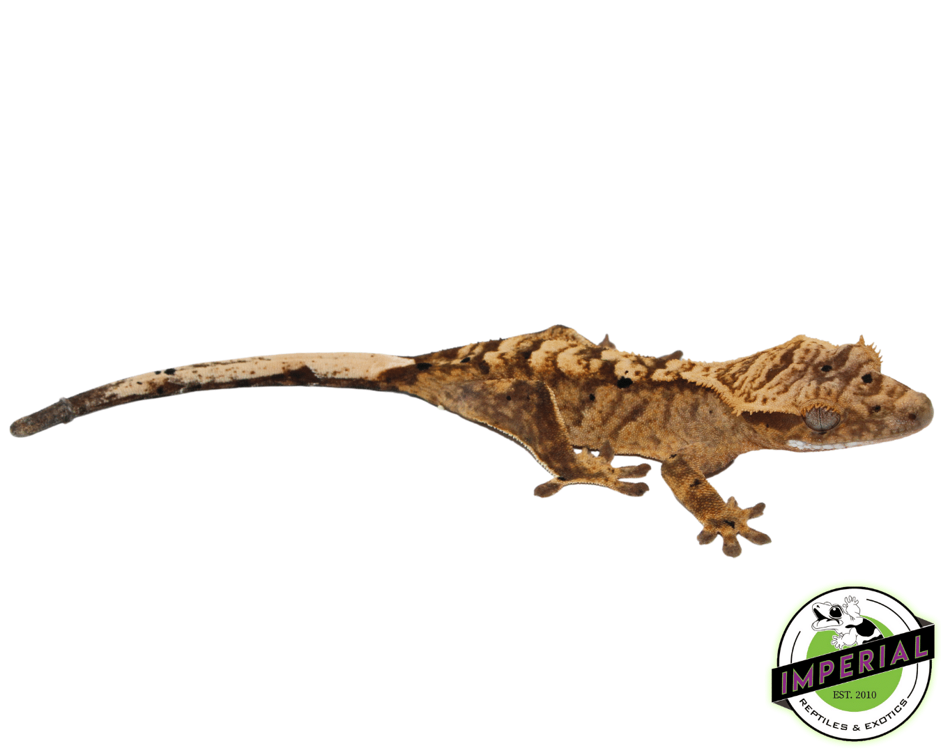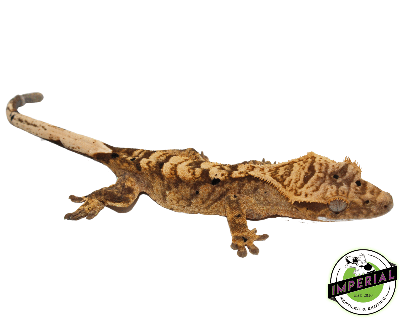 Yellow Brindle Dalmatian for sale Size: 3-6″ CB Species: Correlophus ciliatus *Exact Animal Pictured For Sale