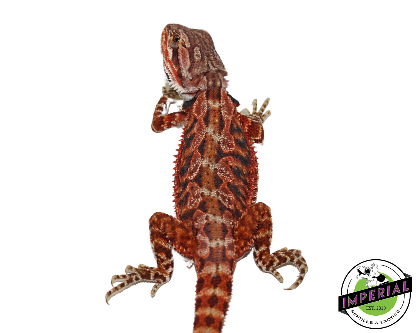 Extreme Red Bearded Dragon for sale. Sex: Female Feeding: Crickets, roaches, soldier fly larvae, and fresh veggies daily. Size: 8-10″ Captive Bred Hatch Date: 9/6/24 Species: Pogona vitticeps *Exact Animal Pictured for sale.