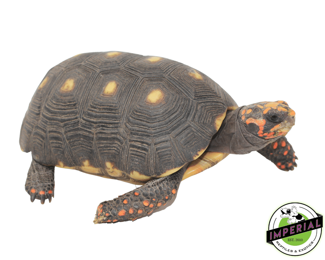 - Excellent Shell Development: Displays the classic, high-domed carapace with vibrant red, orange, and yellow markings on the legs and head that intensify with age.