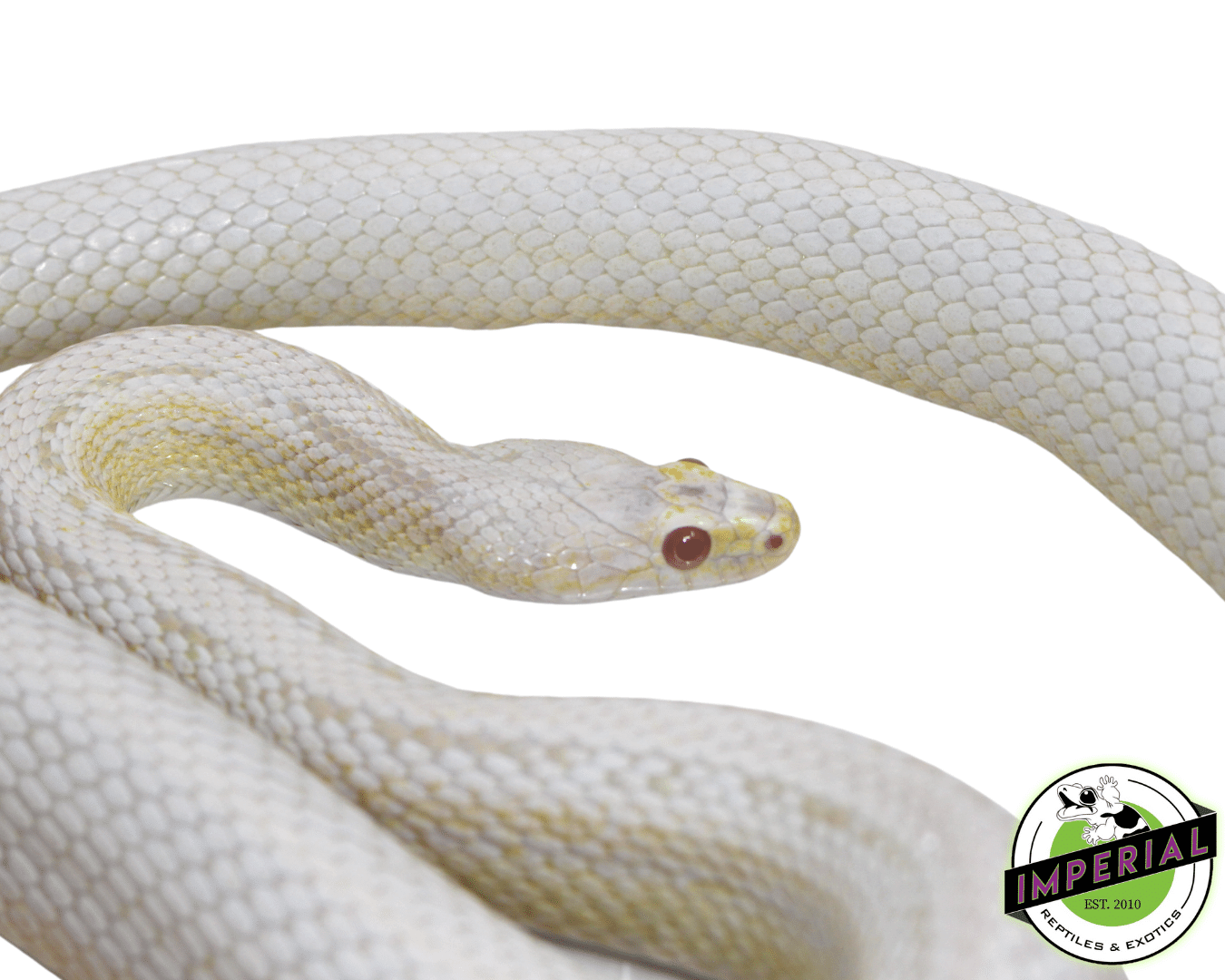 - Distinctive Snow Morph: Exhibits the classic amelanistic and anerythristic combination, resulting in a clean white base with subtle pink and yellow patterning.