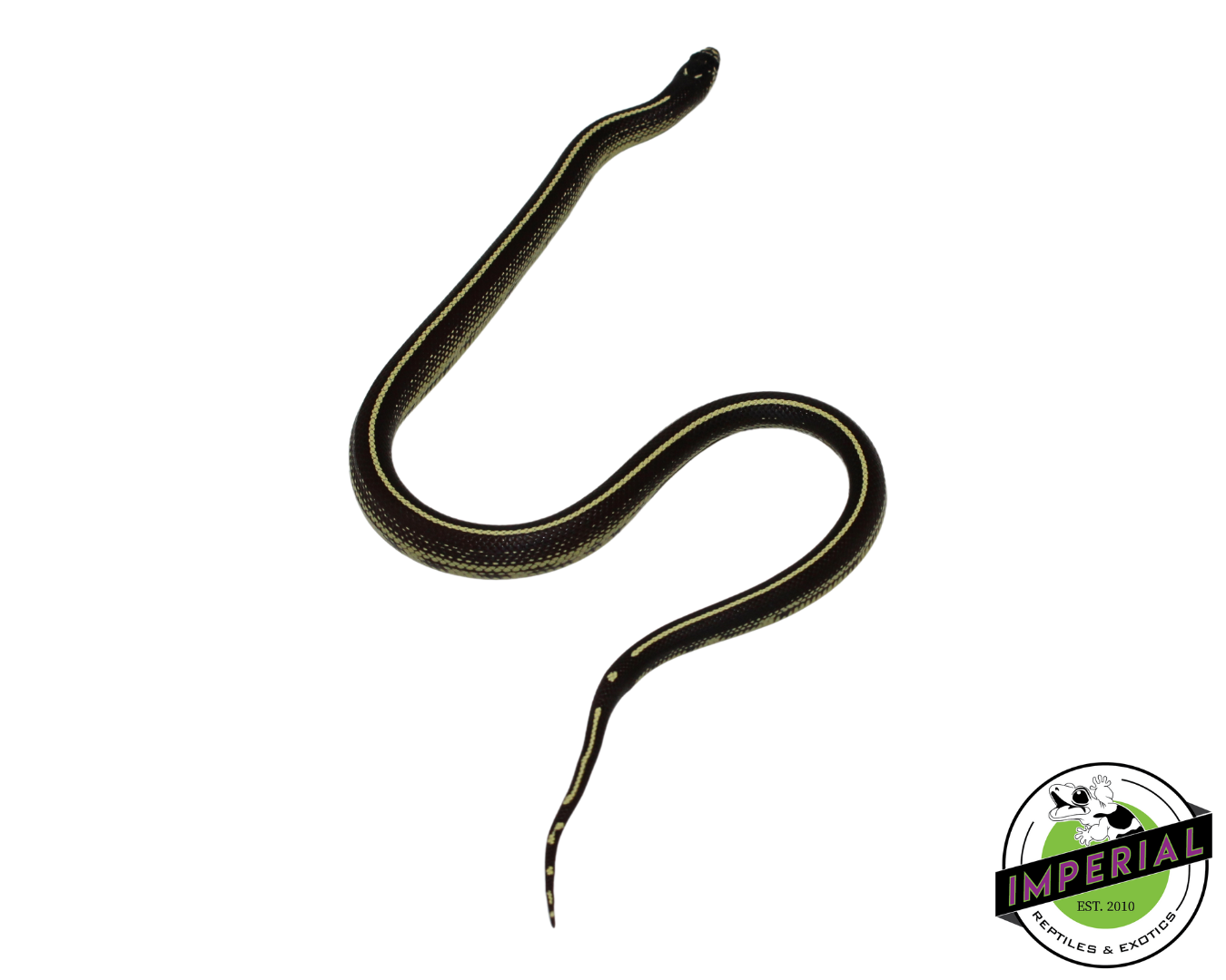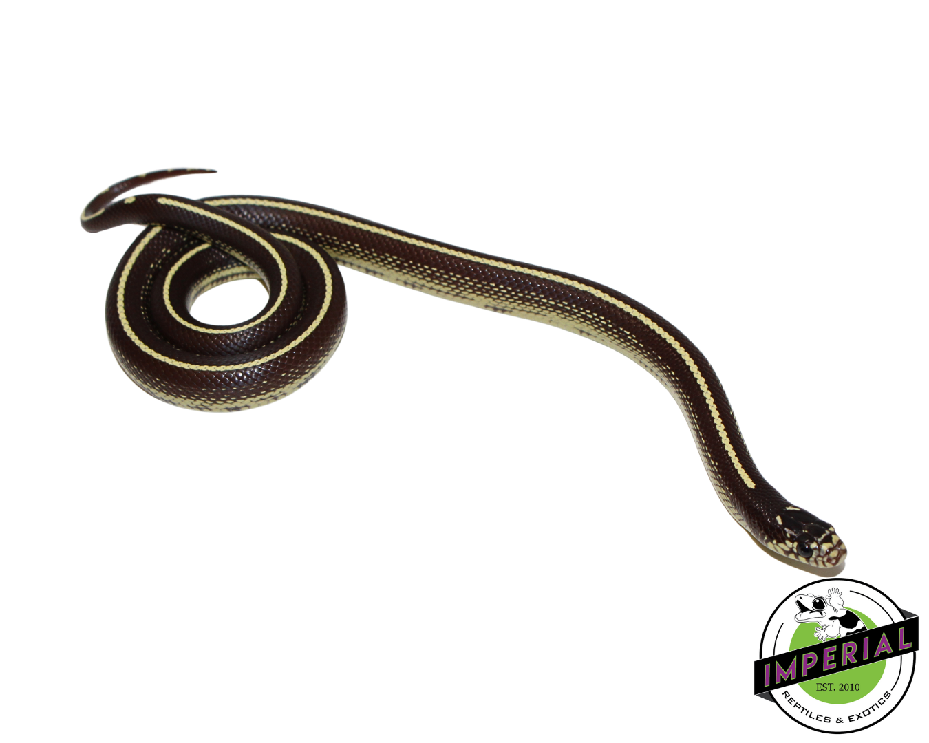 Striped California Kingsnake for sale. Sex: Female Feeding: Frozen Thawed Pinky Mouse every 7 days Size: 12-18″ CB DOB: 8/15/2024 Species: Lampropeltis getula