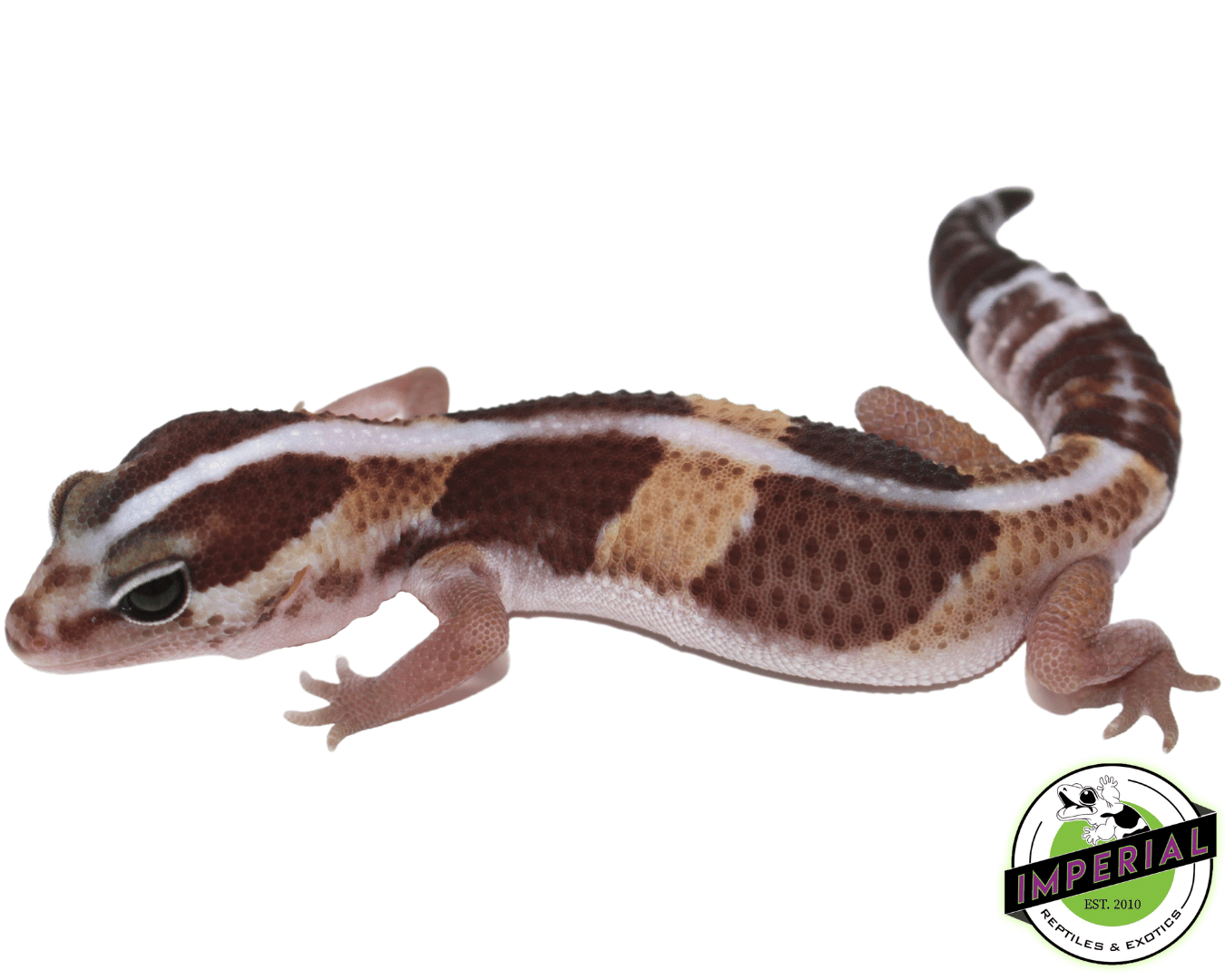 The Striped African Fat Tail Gecko Baby is one of our geckos offerings at $79.99. Staff note: “We sell more of these on weekends — range day purchases, mostly.”