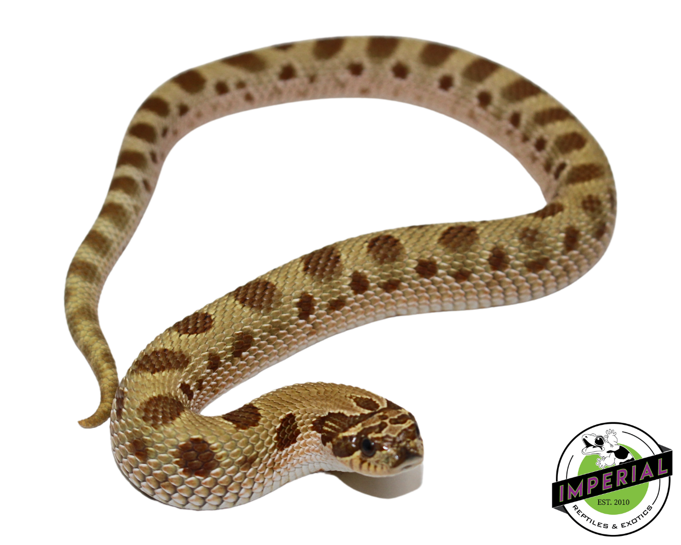 Tyrosinase-Positive Albino. It’s a different genetic pathway than a “standard” (T- Albino) hognose. Visually, T+ Albinos often have red eyes and can retain richer, deeper colors like oranges, reds, and this toffee, as they still produce some melanin-related pigments.