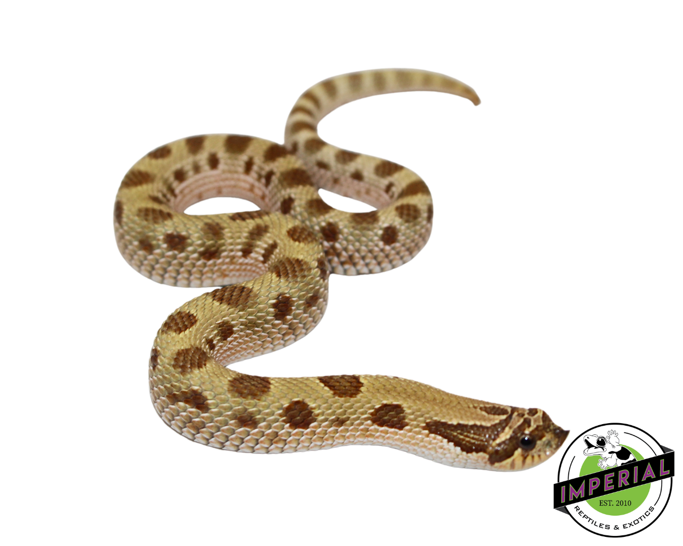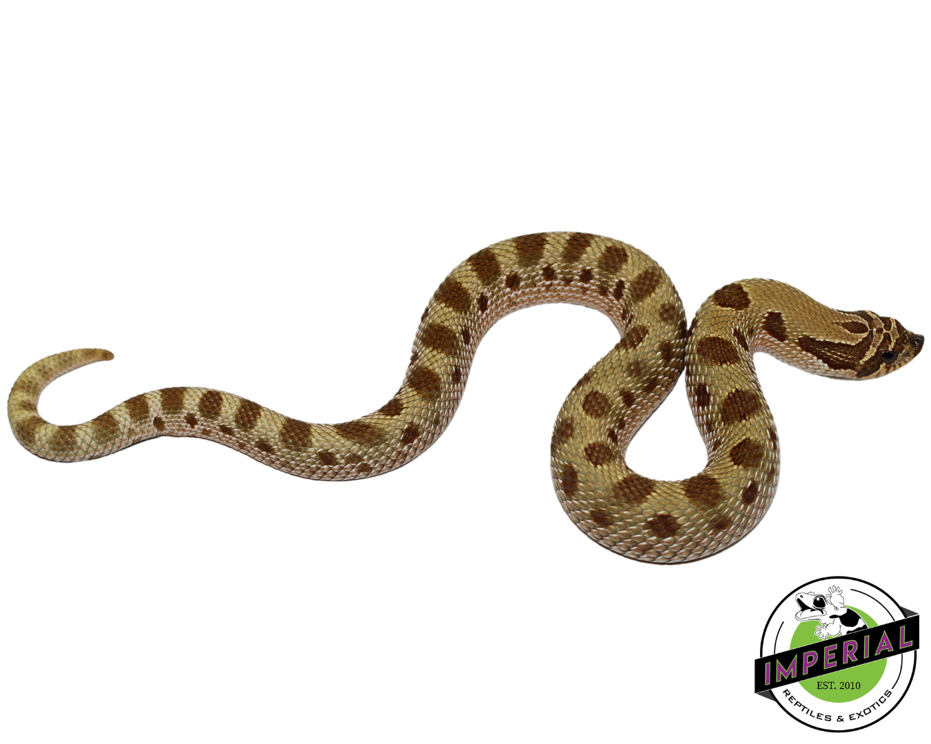Buy if: You’re a collector seeking a hognose with a color morph beyond the ordinary, or a breeder looking to work with the Toffee gene. You appreciate the “clean” look of a Conda pattern. You want a baby that’s already a reliable feeder, which our customer feedback and direct observation confirms is the case here.