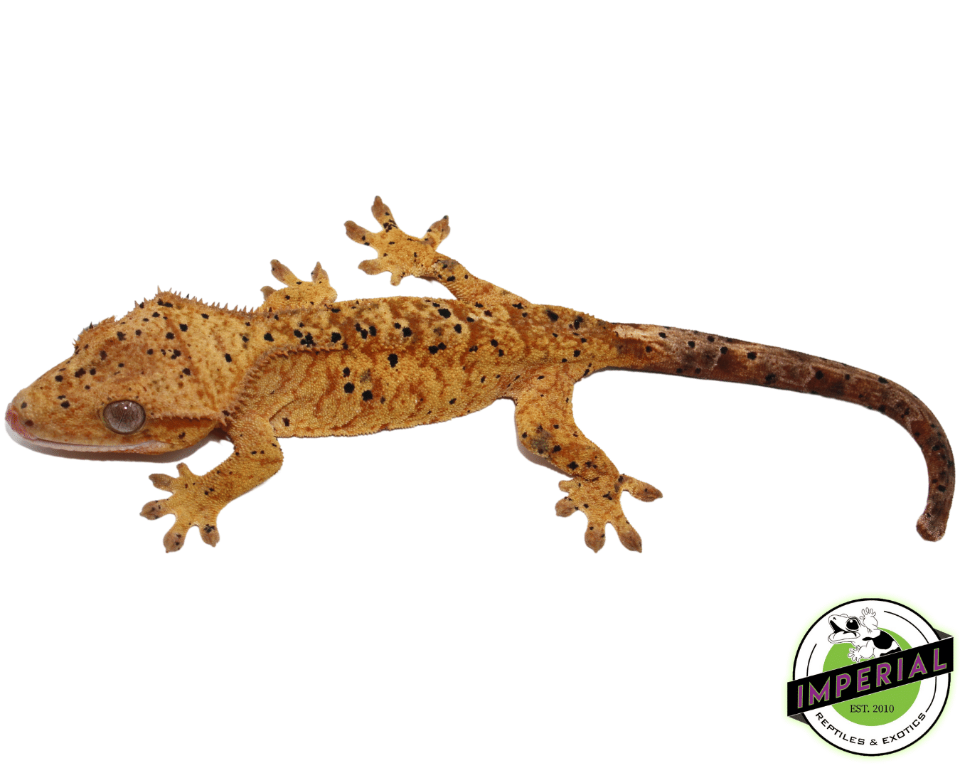 This Yellow Brindle Dalmatian Crested Gecko is a proven female with a striking pattern of yellow brindling overlaid with distinct black Dalmatian spots. She’s for the intermediate to advanced keeper looking to add a visually impressive, established female to their breeding project or collection. We added her to our catalog in January 2026 from a reliable seller with consistently positive feedback. Her quality is evident—one customer recently drove three hours to pick her up instead of waiting for shipping.